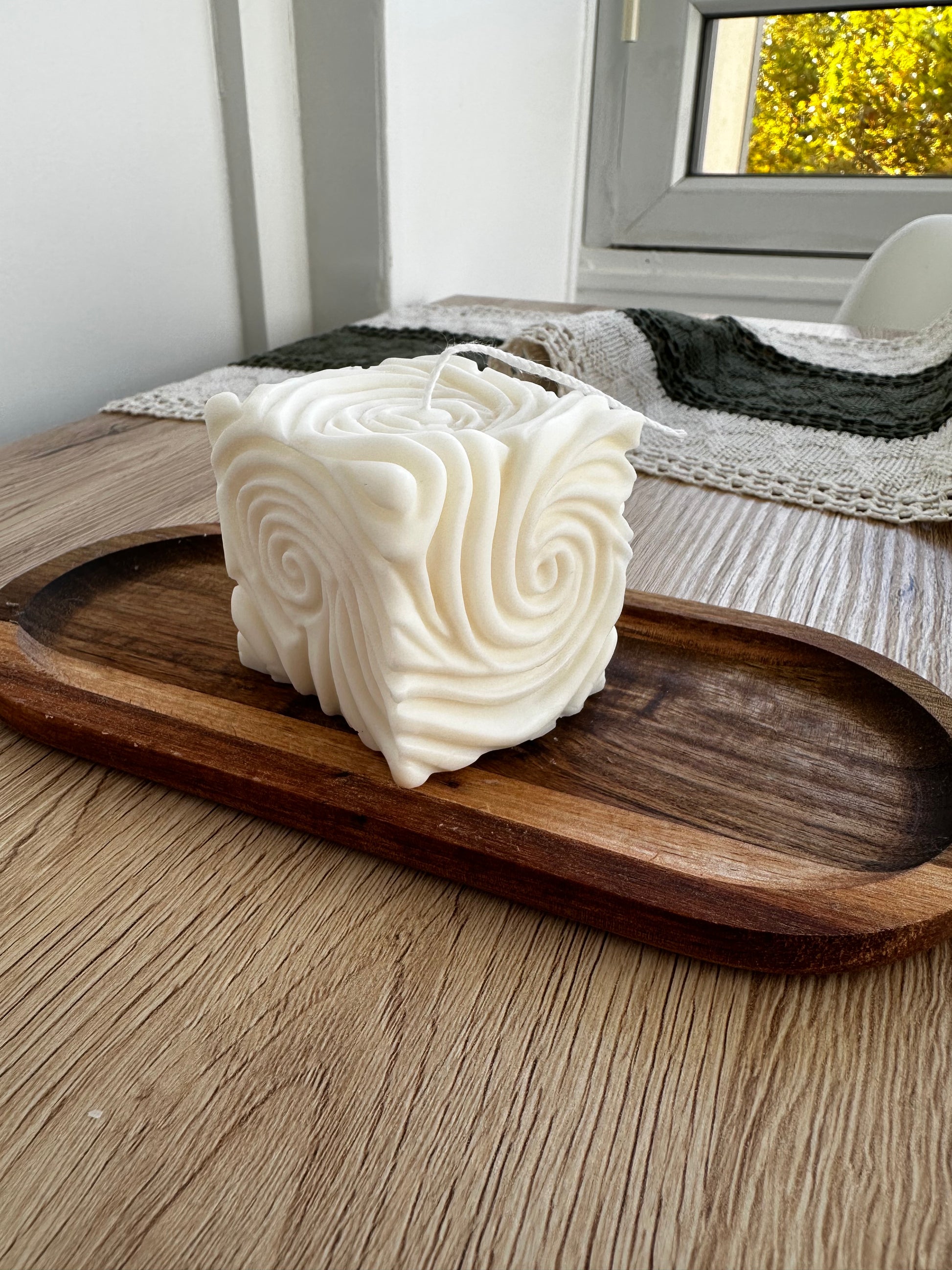 “Chemin” est une bougie cubique unique, dont le sommet révèle un labyrinthe en relief, symbole du voyage et de l’exploration intérieure. Allumer cette bougie, c’est s’offrir un moment de calme et de contemplation, où la lumière douce guide vos pensées à travers les chemins sinueux de l’imagination.