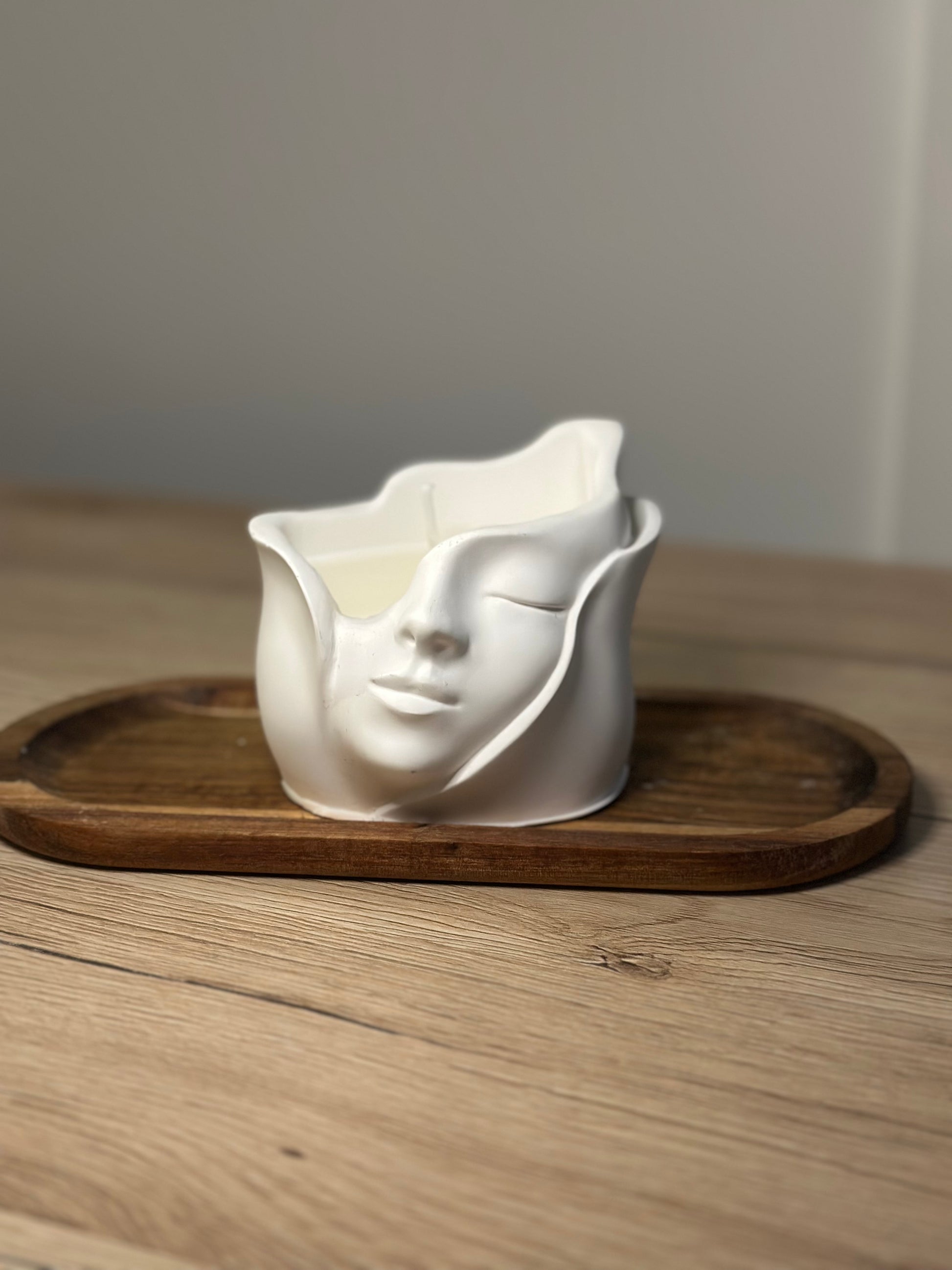 “Rêverie” est une bougie sculpturale représentant un visage détendu, symbole de sérénité et de tranquillité. Allumer cette bougie, c’est inviter un moment de calme et de méditation dans votre intérieur, où la lumière douce accompagne vos pensées et crée une atmosphère cosy et apaisante.