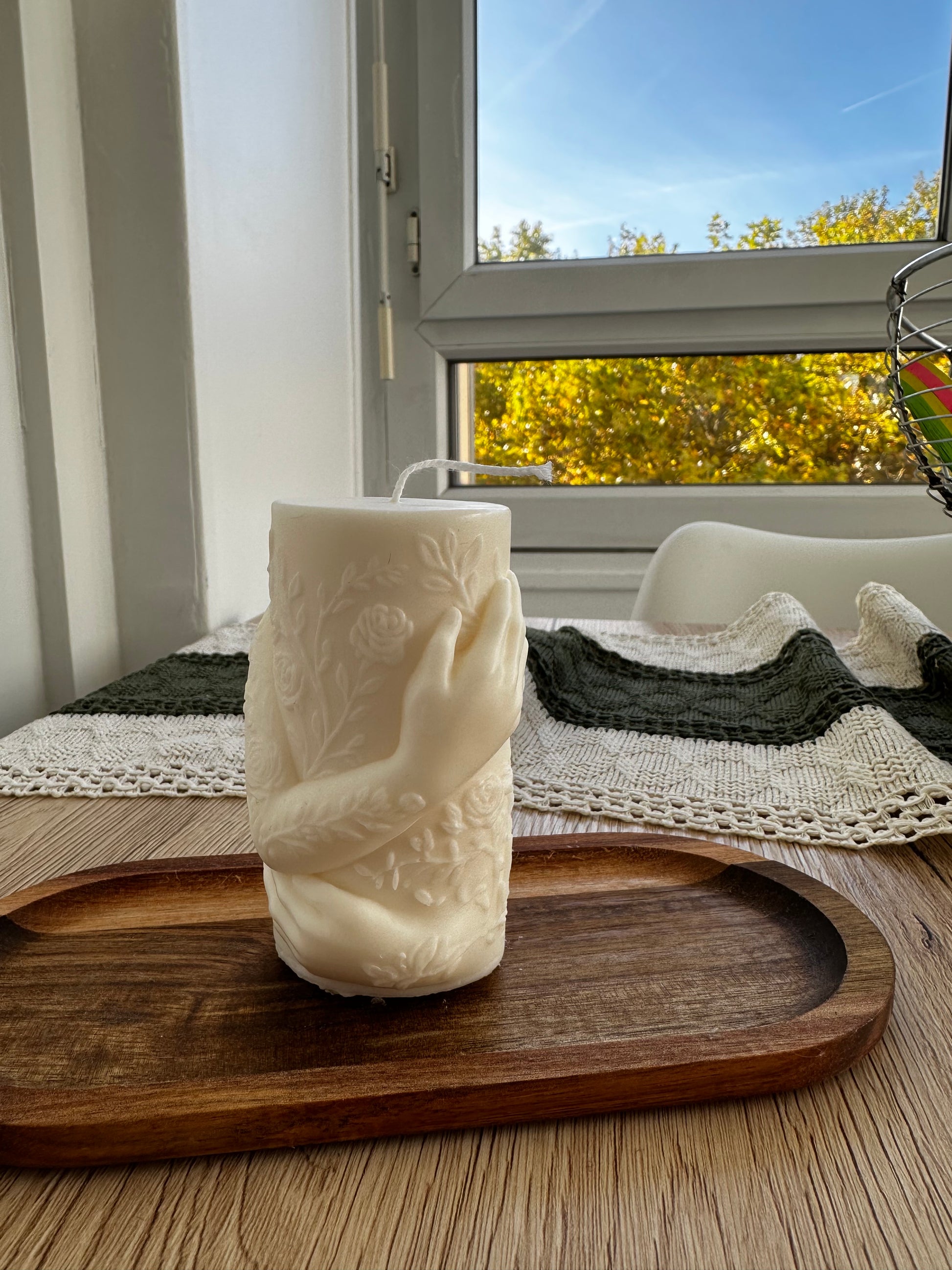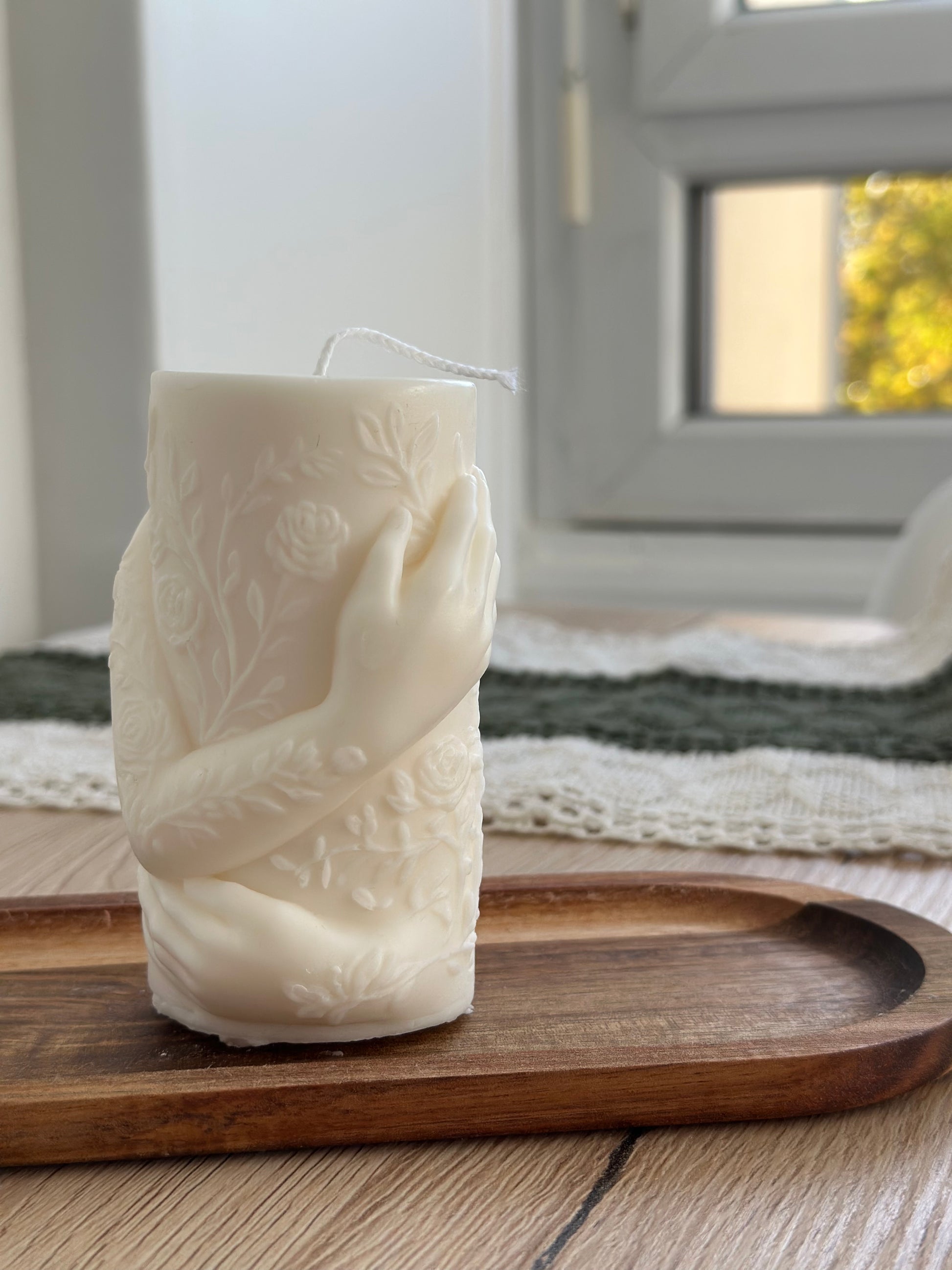 “Solitude Douce” est une bougie qui célèbre le moment intime avec soi-même. Ses mains entrelacées sur la cire évoquent un absolu étreinte, un instant suspendu où le calme et la douceur se rencontrent. Allumer cette bougie, c’est inviter une atmosphère chaleureuse et apaisante dans votre intérieur, un petit refuge pour vos pensées et vos émotions.
